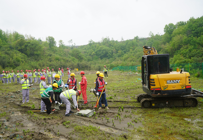 演练过程中,各应急小组闻令而动、快速到位。安全警戒组快速布设警示带、疏散现场人员、实施区域封闭;医疗救助组第一时间对受伤人员进行初步处置并转移至安全区域;技术保障组结合机器狗传回的现场情况,快速制定科学处置方案;现场救援组有序组织挖机清淤、堆沙袋、铺设防水布,快速恢复排水功能;后勤保障、舆情监控、事故调查等各组分工明确、协同配合,各项处置工作有条不紊推进。经过高效联动,现场险情得到有效控制,人员、设备全部安全撤离,演练达到预期效果。