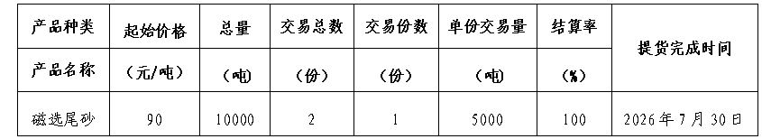 3.本次竞价实行限购规则,每个竞买人仅限申购一份磁选尾砂产品,若存在多份申购行为,其所有申购均视为无效。