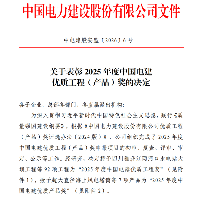 近日,中国电力建设股份有限公司(以下简称中国电建)优质工程奖评选结果正式揭晓。由湖北长崃公司投资建设运营的卧龙庵矿项目工程(以下简称项目),凭借前瞻的规划设计、领先的绿色建造理念、卓越的工程品质、创新的技术工艺体系及显著的综合效益,在众多优秀项目中脱颖而出,成功斩获“中国电建优质工程奖”。